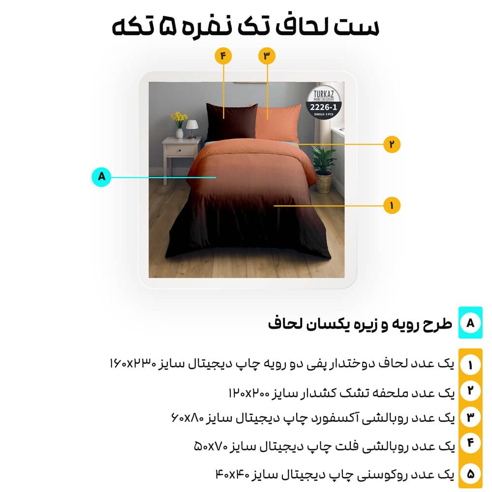 ست روتختی تک نفره 5 تکه طرح 2226-1